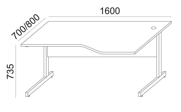 Íróasztal, íves, jobbos, szürke fémlábbal, 160x80 cm, MAYAH "Freedom SV-29", fehér