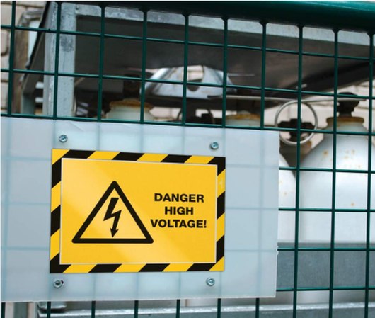 Sárga-fekete színű, biztonsági infokeret, melyet használhat a falakon és ajtókon elhelyezett figyelmeztetésekhez és hirdetményekhez.