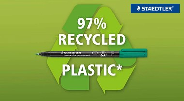 STAEDTLER „Lumocolor” termékcsaládja évek óta kiváló minőséget képvisel, legyen szó irodai vagy otthoni projektről. A kiváló minőség mellett az írószereket gyártó cég hatalmas lépést tesz a fenntarthatóság felé, és folyamatosan átáll az újrahasznosított műanyagok használatára. Az érintett "Lumocolor" termékek tollteste 97 százalékban újrahasznosított műanyagból készül.