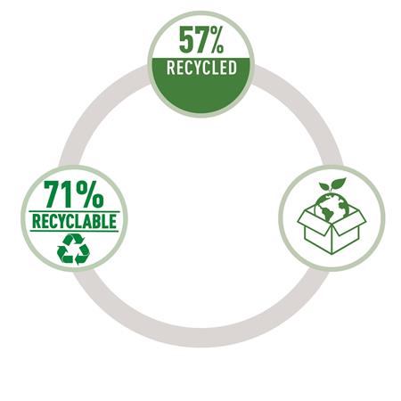 -a termék teljesen szétszedhető a különböző anyagtípusokra, 71%-ban újrahasznosítható. Műanyagmentes csomagolás