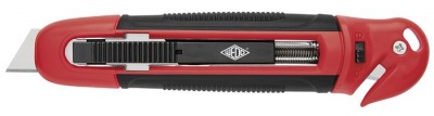 Univerzális kés, 18 mm, fóliavágóval, WEDO, "Safety" piros/fekete