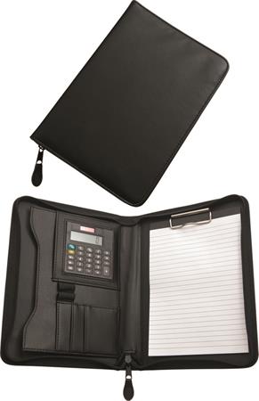 Konferencia mappa, A5, műbőr, számológéppel, leszorítóval, fekete