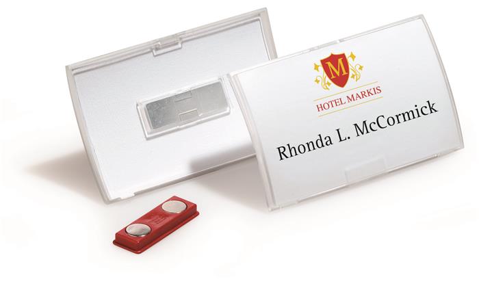 Névkitűző, mágneses, 54x90 mm, DURABLE "CLICK FOLD", áttetsző