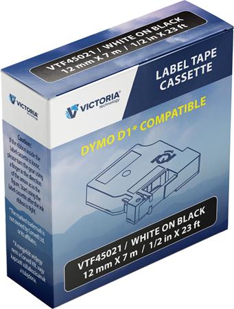Feliratozógép szalag, 12 mm x 7 m, VICTORIA TECHNOLOGY, fekete-fehérAlapítvány támogatás 2 Ft