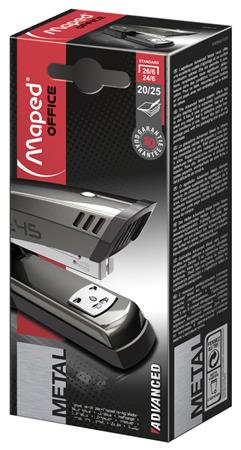 Tűzőgép, 24/6, 26/6, 20 lap, MAPED "Advanced Half-Strip", sötétbarna