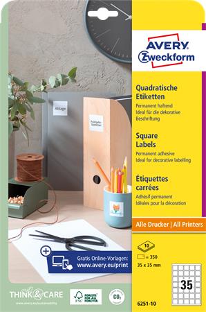 Etikett, univerzális, 35x35 mm, AVERY ZWECKFORM, 350 etikett/csomag