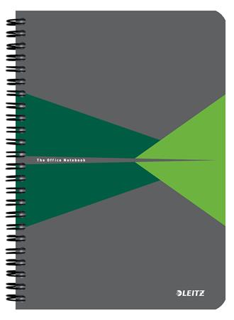 Spirálfüzet, A5, kockás, 90 lap, PP borító, LEITZ "Office", szürke-zöld
