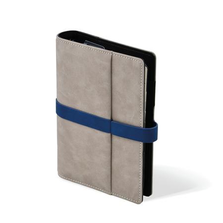 Kalendárium, gyűrűs, betétlapokkal, "L", műbőr, SATURNUS,"225", szürke-kék