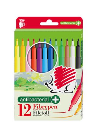 Antibakteriális filctoll készlet 12 különböző színben,biztonsági kupakkal.
