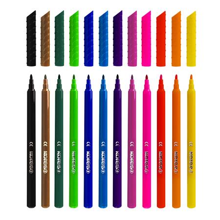 Filctoll készlet, kimosható, KORES "Korellos", 12 különböző szín