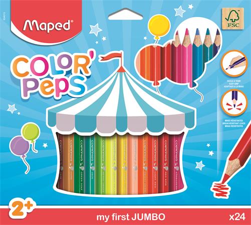 Színes ceruza készlet, háromszögletű, vastag, MAPED "Jumbo", 24 különböző szín