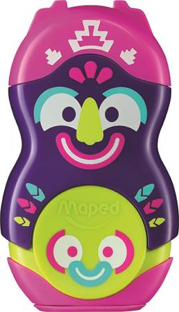 Hegyező és radír, egylyukú, tartályos, MAPED "Fancy", vegyes színek