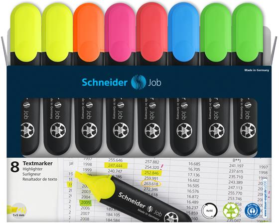 Szövegkiemelő készlet, 1-5 mm, SCHNEIDER "Job 150", 6+2 szín