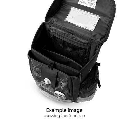 - 2 belső rekesz (A4-es méretű könyveknek megfelelő) + 1 órarend tároló + 2 oldalsó rekesz (esernyő + 0,7 literes palack részére).