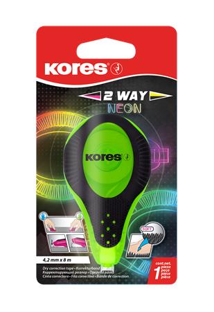 Hibajavító roller, 4,2 mm x 8 m, KORES "2WAY Neon", vegyes színekben