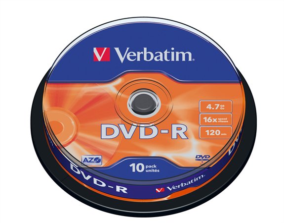 DVD-R lemez, AZO, 4,7GB, 16x, 10 db, hengeren, VERBATIM