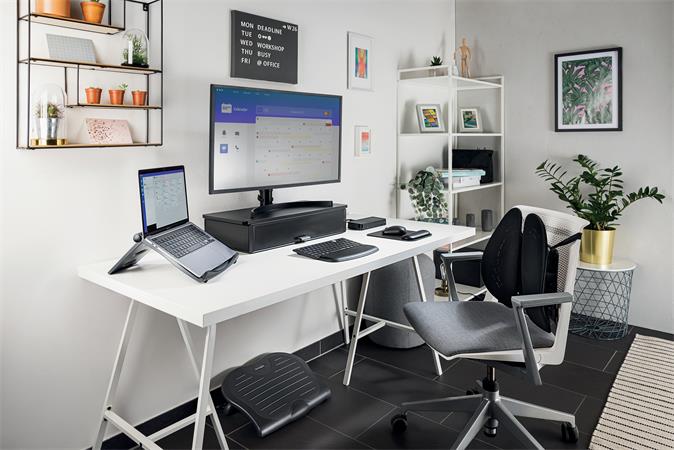 A hordozható ergonomikus megoldást kereső hibrid munkavállalók, valamint a fenntartható megoldásokat igénylő szervezetek számára ideális SmartFit® Easy Riser™ EQ laptoállvány javítja a munkaállomások ergonómiáját és hatékonyabb munkavégzést eredményez. Az állvány 50%-ban fogyasztás utáni tartalom (PCR) felhasználásával készül, így segít környezeti hatásunk csökkentésében. A szabadalmaztatott SmartFit® rendszer lehetővé teszi a laptopképernyő magasságának és dőlésszögének testreszabását, hogy csökkentse a hát, a nyak és a szem megerőltetését. Elősegíti a légáramlást az akkumulátor teljesítményének javítása érdekében, utazáskor laposra összehajtható.