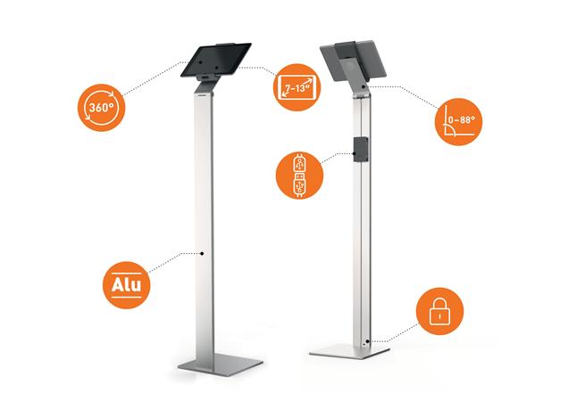 Az elegáns megjelenésnek köszönhetően ez a tablet tartó állvány beleillik minden környezetbe.
