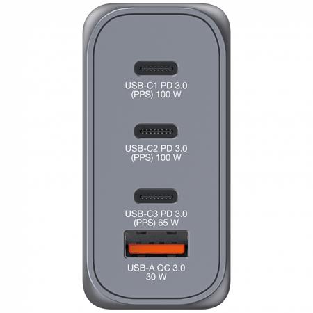 Támogatja akár 4 eszköz egyidejű töltését is(max 100 W teljes teljesítménnyel). Összecsukható egyesült államokbeli száraival és cserélhető EU- és UK-dugaszaival a tökéletes útitárs.