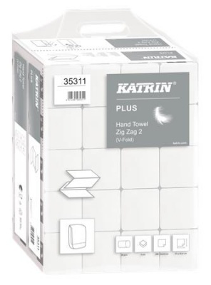 Kéztörlő, Z hajtogatott, 2 rétegű, 200 lap, KATRIN, hófehér