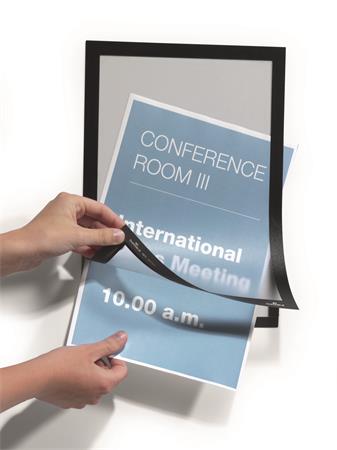 A DURAFRAME® segítségével profin és kényelmesen helyezhetjük ki dokumentumainkat bármilyen sima, kemény felületre, például ablakra, iratszekrényre vagy ajtóra.