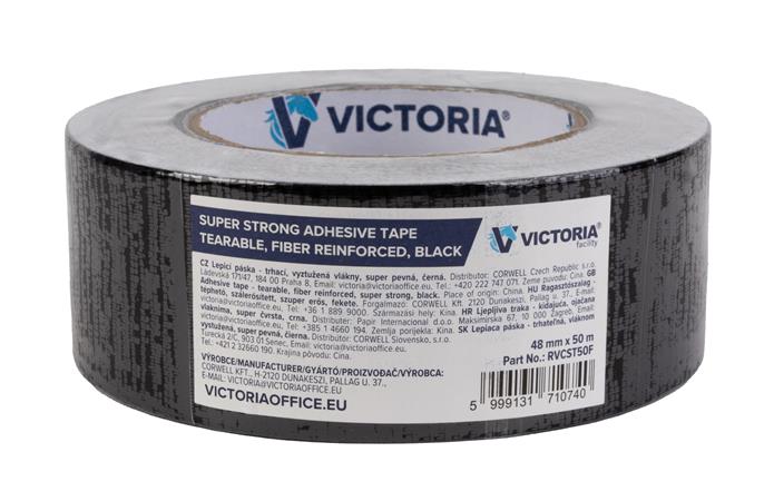 Ragasztószalag, 48mm x 50m, szálerősített, szupererős, VICTORIA FACILITY, fekete