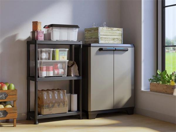 Szerszámtároló szekrény, alacsony, műanyag, KETER "Linear", fekete-szürke